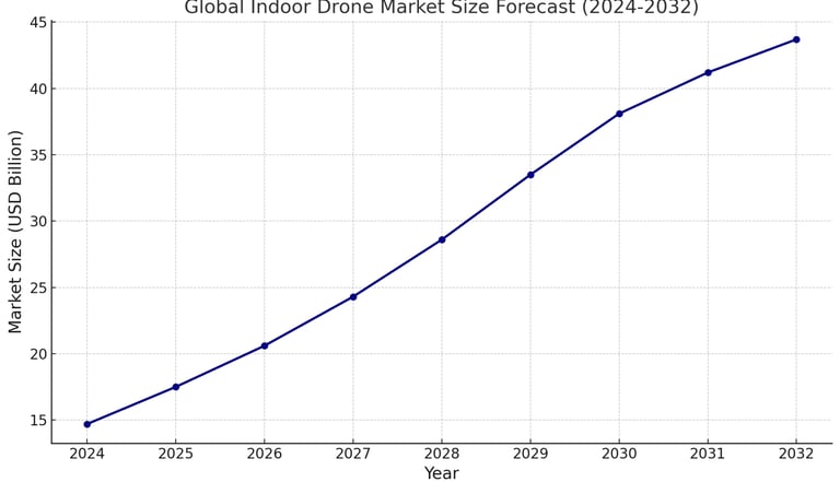 “The global indoor drone market forecast from 2024 to 2032 shows growth from USD 14.7 billion in 2024 to USD 43.7 billion by 2032, with a CAGR of 14.6%. The expansion is driven by increasing demand for agriculture, logistics, and entertainment. ”
